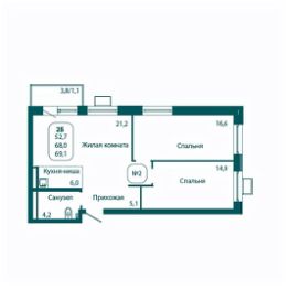 Продаётся 2-комнатная квартира в сданном доме (Корпус 1), срок сдачи: IV-кв. 2025, общей площадью 69.1 кв.м., на 9 этаже. Жилой комплекс "Андреевка LIFE" от застройщика "ГК СтройИнновация" в Московской области, р.п. Андреевка, ул. Георгиевское шоссе.