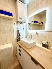 Дом — это не просто стены и метры. Это место, где тебя знают по имени, где соседи здороваются с улыбкой и где чувствуешь себя частью небольшого, но очень тёплого сообщества. И наш вариант не про квадратные метры, а в первую очередь про атмосферу! Эта двухкомнатная квартира расположена в небольшом клубном доме — единственное в комплексе предложение , где формат квартирного подъезда сочетается с атмосферой таунхаусов. Здесь всего по одной квартире на этаже, поэтому ощущение приватности и покоя буквально в воздухе. Людей немного и это делает жизнь здесь особенно комфортной: все друг друга знают, при этом у каждого есть своя территория и личное место для автомобиля. Во дворе — порядок, чистота, уважение и забота. Здесь не спорят — здесь помогают друг другу. С утра квартиру наполняет естественный свет: окна спален выходят на юговосток, поэтому солнце здесь с первых лучей и до конца дня, создавая ощущение бодрого, живого пространства. Ощущение простора создаётся не только за счёт света, но и за счёт высоких почти 3-х метровых потолков - больше воздуха и объёма, легче дышится, комфортнее размещать высокий шкаф, стеллаж, кухонные модули, а при желании можно добавить многоуровневое освещение, декоративные балки или карнизы, не съедая пространство. К вечеру можно устроиться на кухне с чашкой чая и наблюдать закат уже из окон, выходящих на противоположную сторону дома — день красиво начинается и так же красиво заканчивается. С одной стороны окон открывается великолепный вид на озеро Сенеж. Утром можно просто вдохнуть свежий воздух, заварить кофе и на мгновение забыть, что вокруг — город. А летом взять полотенце и пешком дойти до Веретьевского пляжа: позагорать, искупаться, пройтись до яхтклуба "Сенеж", взять лодку или сап и просто провести день у воды. С другой стороны дома — лицей 1 имени А. А. Блока, прямо через двор. Родителям не нужно переживать: ребёнок идёт в школу без дорог и суеты, буквально у вас на глазах. Немного дальше — детский сад Золотой ключик, куда можно спокойно дойти пешком. А если ребёнок любит спорт или творчество — рядом есть всё необходимое: - Спортивный комплекс Олимп с бассейном и гимнастическим залом, - Дом детского творчества Буревестник, где ребята учатся петь, танцевать, выступают на концертах. Все кружки, секции, школа и сад — пешком, машина для этого просто не нужна, а вы спокойны, что ребёнку не приходится переходить большие дороги. О квартире Само жильё полностью готово к жизни: сделан качественный ремонт, установлена мебель — можно заехать сразу. Внутри — автономное отопление и горячее водоснабжение от индивидуального газового котла, что даёт не только комфорт, но и свободу: вы сами регулируете тепло и экономите на коммунальных платежах. Окружение — территория с парковками, зелёной зоной и двором, где всегда спокойно и безопасно. Это не просто квартира. Это место, где всё под рукой — природа, комфорт, школа, друзья и ощущение дома, в котором тебя ждут. С нами покупка этой квартиры