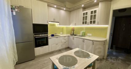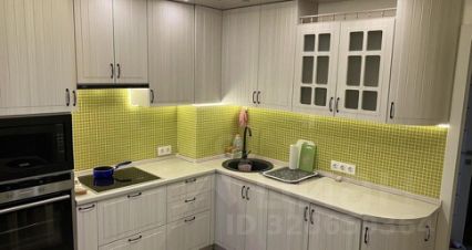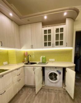 стиральная машинка (встроена в кухонный шкаф), электрические плита и духовка, вытяжка и микроволновка.