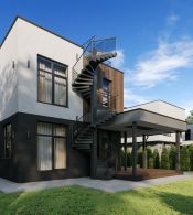 Лестница с 1 на 2 этаж железобетонная внутри дома и винтовая снаружи. А на первом этаже запланирована сауна.
