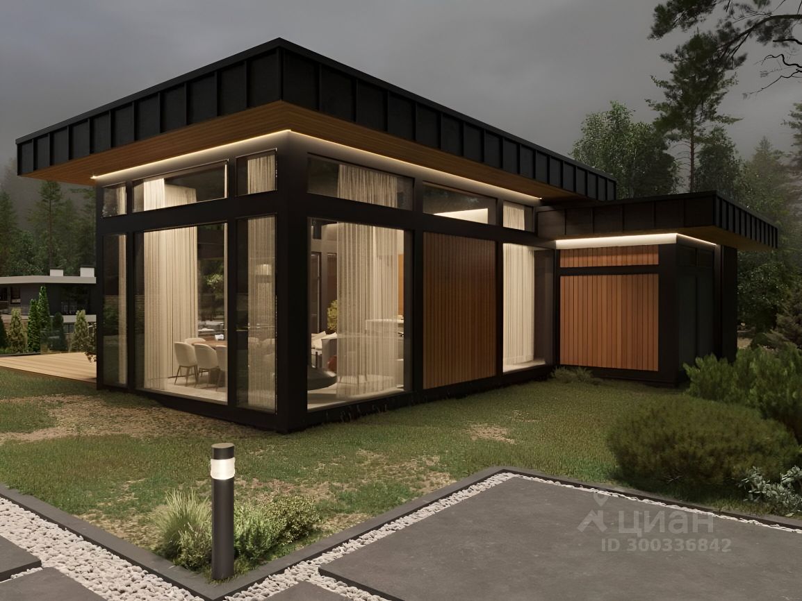 Дом сделан в стиле фахверк по технологии PREFAB. Все конструктивные элементы были обработаны и покрашены в цеху, стены собраны также в заводских условиях. Балки перекрытия - деревянный двутавр 360 мм(h). Крыша - плоская двух уровневая с организованным скрытым отводом воды. Кровля - ПВХ-мембрана.
