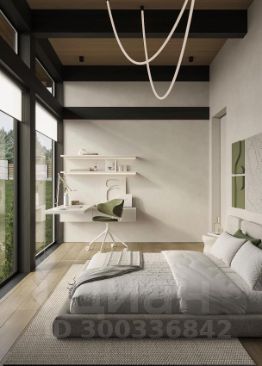 Благодаря большому количеству панорамных окон, спальня всегда будет наполнена естественным светом. В специальные ниши можно заложить электроприводы для штор и жалюзи. Из мастер-спальни есть выход сразу на просторную веранду 80 м²