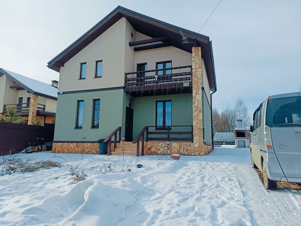 Сам дом большой, светлый, уютный, с высокими потолками (3.3 первый этаж, 2.9 второй этаж). Фундамент свайно-ростверковый, причем сваи забивные, строили до эпохи экономии. Стены утеплены экструдированным пенополистиролом, стропильная система - 200 мм минваты. Фасад отделан штукатуркой короед. Потолки натяжные по всему дому. Отопление электрокотлом, радиаторы отопления с теплоносителем. В самое холодное время года - не более 10 тыр. счета за электричество. У дома нет проблем ни с чем вообще.