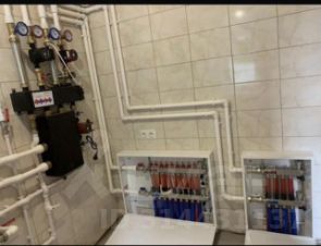 Все необходимые коммуникации заведены: электричество ( розетки и выключатели установлены, система теплый пол), вода из собственного колодца , глубина на 18 колец, пол выполнен по технологии сухой стяжки, установлен двухконтурный котел, подготовлены места для радиаторов отопления.