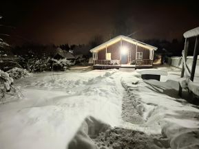 Продаётся просторный, теплый дом, предназначенный для постоянного проживания, расположенный в экологичном живописном месте. Дом оборудован качественной, дорогой мебелью и техникой, кондиционером, видеонаблюдением и высокоскоростным интернетом. Натянуты потолки. Качественные двухкамерные пластиковые окна. В доме большая прихожая, просторная кухня-гостиная, 2 спальни, большой санузел и огромная терраса. Утепление: стены 150, пол/потолок 200 базальтовым плитным утеплителем. Ветровлагозащита снаружи, пароизоляция внутри (термос). Каркас обработан огнебиозащитой. Денег на строительство не жалел, строил для себя. Участок крайний к лесу, отличный вид на вековые ели, чистый воздух и тишина! Во дворе видеонаблюдение. Своя калитка в грибной лес. На участке хозблок и дровник, плодовые деревья и кустарники. Участок находится в закрытом СНТ с круглосуточной охраной. Въезд через автоматические ворота. Освещение улиц. На территории располагаются две детские площадки, площадка для пляжного волейбола, облагороженный пруд с лавочками. Электричество по сельскому тарифу (день/ночь). Участком пока не занимался, нужно планировать и ровнять.