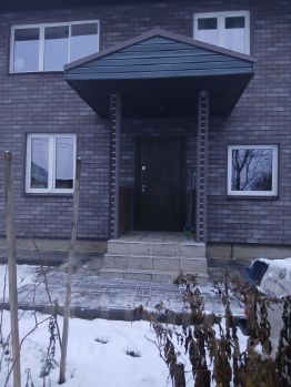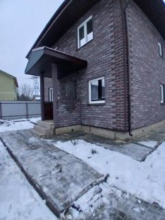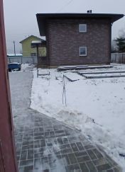 Вокруг дома - отмостка, площадка на 3 машины выложена плиткой.
