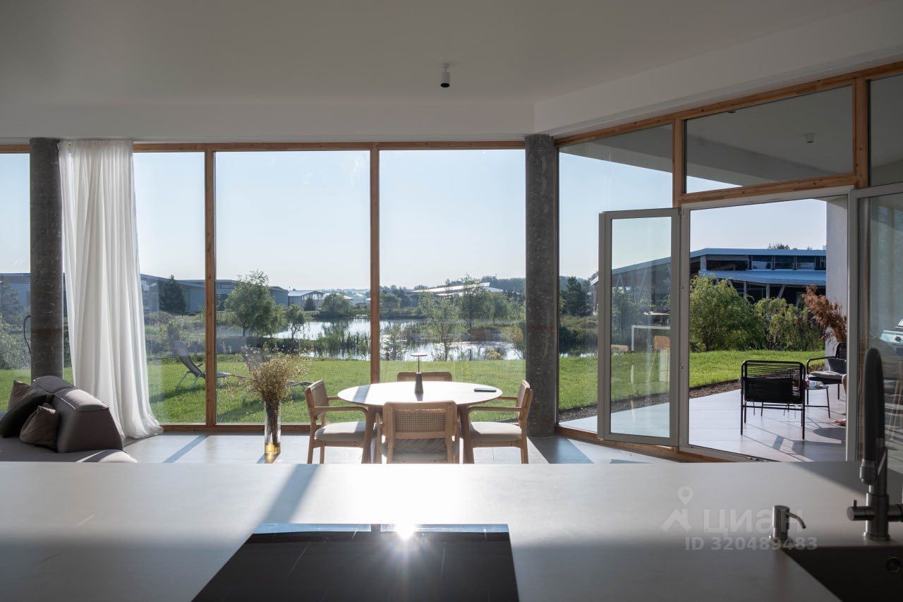Современная архитектура дома выстраивалась из удобства планировки. Чистые линии, оптимальное распоряжение пространством. Форма дома идеально вписывается в ландшафт. Живописный вид на озеро, с выходом к воде из террасы. В доме будет вся необходимая мебель и техника. Проект виллы 370 кв.м. с потолками до 3,4 - 4,6 метров, панорамное остекление и открытая веранда создают впечатление полного единения с природой. Терраса и парковка. Стройматериалы нового поколения, экологичные и износостойкие. Био - тек архитектура, энергоэффективные решения.