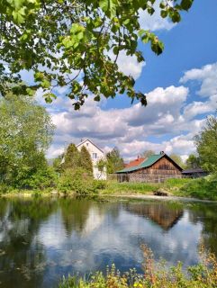 На территории участка расположена баня с открытой террасой, плодовый сад с деревьями и кустарниками, хозблок. Тихое, живописное и спокойное место для отдыха с семьёй и круглогодичного проживания. сть прописки. Рядом озеро. Из окон дома открывается вид на пруд. Индивидуальный выход к пруду с участка.