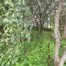 Плодородный слой почвы, много декоративных кустарников и плодовых деревьев (яблони).