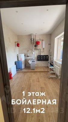 На 1-м этаже гостиная 42,2 кв. м., кухня 21,1 кв. м., спальня 19,7 кв. м., бойлерная 12,1 кв. м., с/у 8,1 кв м.