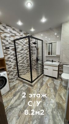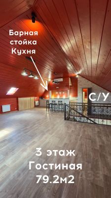 На 3-ем этаже гостиная с барной стойкой и кухней 79,2 кв. м. Два холодильника, встроенные шкафы, с/у 7,8 кв. м.