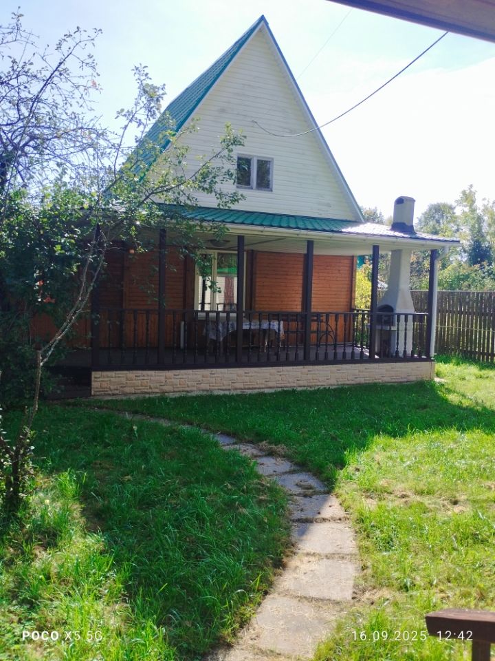 Дом (Садовый дом): 70 кв.м (1 этаж +мансарда)+22кв.м(открытая терраса с барбекю). Фундамент столбчатый. Стены -каркас (внутри обшит вагонкой, снаружи - сайдинг с утеплением). Во всем доме -качественные пластиковые окна. На первом этаже: прихожая с холлом (15,7кв.м), гостиная с кухней (17кв.м) и 2 спальни по 8кв.м. Лестница на 2-й этаж ведет из гостиной. На втором этаже - комната 17кв.м свободного назначения - может быть как спальней (комната - с дверью),так и общей комнатой отдыха. В кухню заведена вода (центральный сезонный водопровод СНТ, функционирует с апреля по октябрь). Отопление (электрические радиаторы в комнатах).