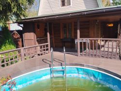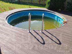 Бассейн: Из бани есть спуск к бассейну с настилом. Бассейн очень добротный. Грамотно оборудован очистительной техникой.