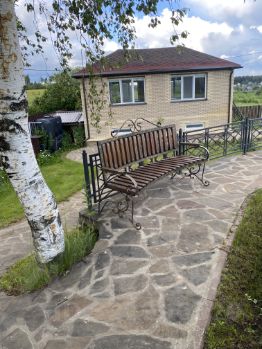Все объекты выполнены в едином стиле из пеноблоков и отделаны качественным облицовочным кирпичом. Объединены 2 участка (8+13) соток. Проведена огромная работа по ландшафтному планированию и дизайну, объекты находятся на разных уровнях и гармонично дополняют архитектурный ансамбль. Украшают территорию кованные элементы ручной работы под индивидуальный заказ (ограждения, скамейки, решетки, лестницы и др.)