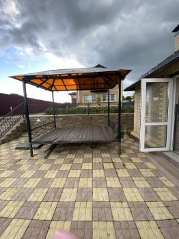 -Закрытая зона для барбекю (капитальная постройка) 14,7 кв м, полностью оборудованная, с мангалом и 2 казанами.