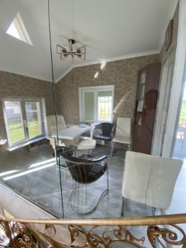 -Основной дом 127,2 кв м, 2этажа: кухня-гостиная, 5 спален, кабинет, 2 санузла с душевой, подвал. Электрическое отопление, теплый пол водяной.
