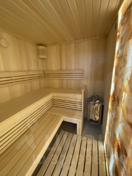 -Гараж на 2 машины, на втором этаже сауна с соляной стеной, санузел с душевой кабиной и комната отдыха с теплым полом, 91,2 кв м.