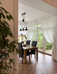 Теплые полы на первом этаже и во всех санузлах дарят приятное ощущение комфорта. В отделке использованы только высококачественные материалы, подчеркивающие изысканность интерьера. Во всех комнатах установлены кондиционеры, поддерживающие идеальный микроклимат. Каменные подоконники добавляют интерьеру благородства, а на первом этаже они еще и подогреваются, создавая дополнительный уют. Межкомнатные двери с отличной шумоизоляцией и магнитными замками гарантируют тишину и приватность. Дополнительная шумоизоляция со стороны соседей обеспечивает спокойствие. Проводной интернет для бесперебойной связи. Окна, выходящие на восток, север и запад, наполняют дом естественным светом в течение всего дня. Свежий ремонт 2023 года придает дому современный и стильный вид.