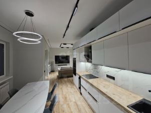Ремонт выполнен с применением качественных материалов: настенные покрытия окрашены, во всех помещениях уложены водонепроницаемый немецкий ламинат с системой подогрева и установлены натяжные потолки. Отопление и горячее водоснабжение реализованы с помощью немецкого газового котла с возможностью зонального регулирования температуры. В кухне-гостиной установлен камин марки АСТОВ. Дом полностью готов к проживанию и укомплектован новой мебелью и бытовой техникой.