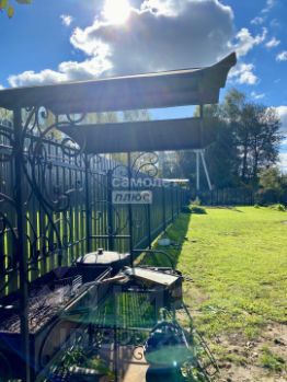 Участок огорожен забором, парковочное место на 2 машины, хозблок, мангал, крольчатник, будка для собаки.