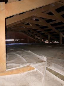 Дом построен для постоянного проживания, размер 6м8м, брус 15см15см, черновой пол утеплен пергамином строизолом и негорючей минватой и засыпан 20см слоем керамзита, доски чистового пола положены, фундамент - бетон м-300, заглублен на 90см, на песчаной подушке 35см, верхняя точка от земли - 45см, кровля шифер, потолки обшиты чистовой вагонкой.