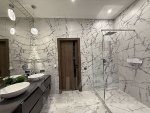 Качественный, современный новый ремонт(2 года),с использованием дорогих материалов,премиальная техника,мебель на заказ,полы на 1- м эт.-керамогранит, с подогревом,на 2-м-паркет американский орех. Стены- декоративная штукатурка.
