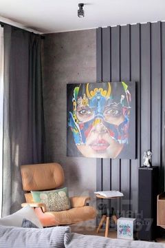 Рабочий кабинет на все 100% пропитан брутальностью, за счет смелых решений с темным цветом интерьера. Выглядит в живую очень красиво, находясь тут так и хочется творить и работать в удовольствие. Продуманное размещение рабочего пространства и зоны отдыха очень помогает в повседневной жизни. Тут всё сделано, как и полагается очень грамотно.