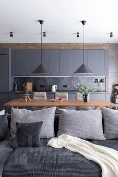 Очень просторная кухня-гостиная с правильным разделением места для готовки и зоной отдыха.