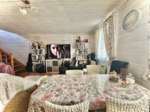 Дом из бруса 85,5 кВ м двухэтажный, 2020 г постройки, первый этаж - кухня-гостиная, совмещенный санузел. Второй этаж - 2 комнаты. Внутри обшит вагонкой. Канализация - 2 сливные ямы на 3 и 7 колец (вырыт до песка, поэтому не нуждается в откачке, все уходит в землю).