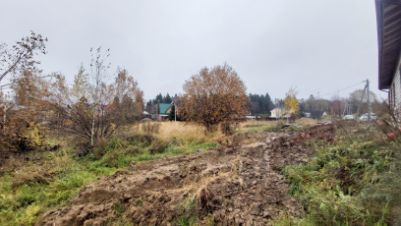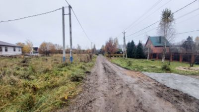 Участок имеет небольшой естественный уклон, расположен в середине деревни (условно 4 линия домов от шоссе). Соседи живут постоянно, есть возможность подключения как к электросети так и газовой сети (труба проходит по границе участка).