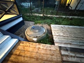 Участок: на участке парковка под две машины. Забор - сетка. Откатные механические ворота и калитка. Есть утепленный домик с подведенной водой и канализацией. Хозблок. По участку выполнен дренаж.