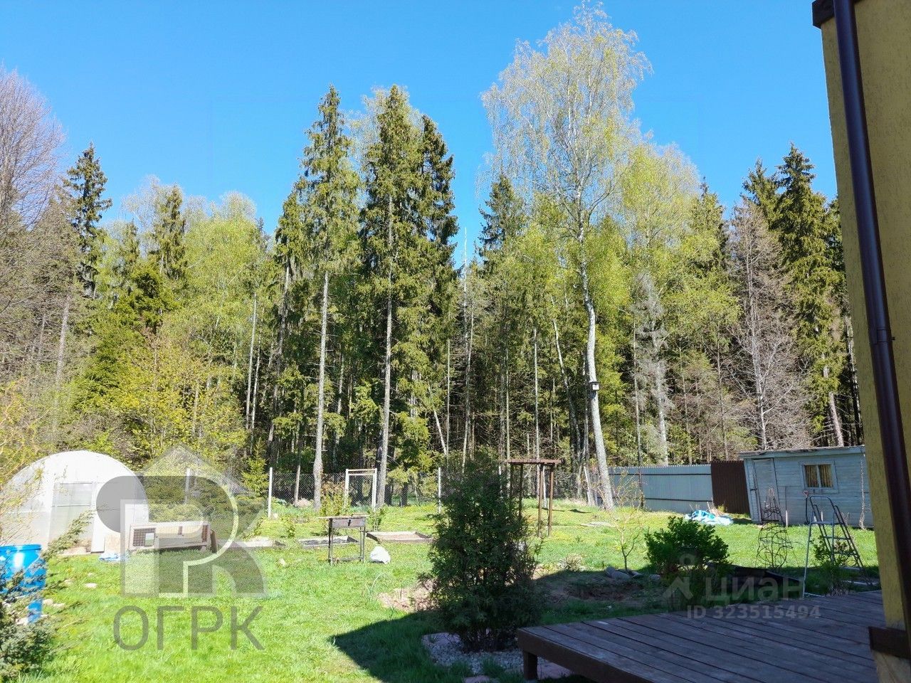 Участок 8 соток ровный, правильной формы, расположение дома у самой кромки леса, со своим выходом в лес. На участке также есть отдельностоящая мастерская-хозблок, теплица.