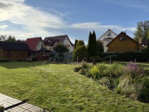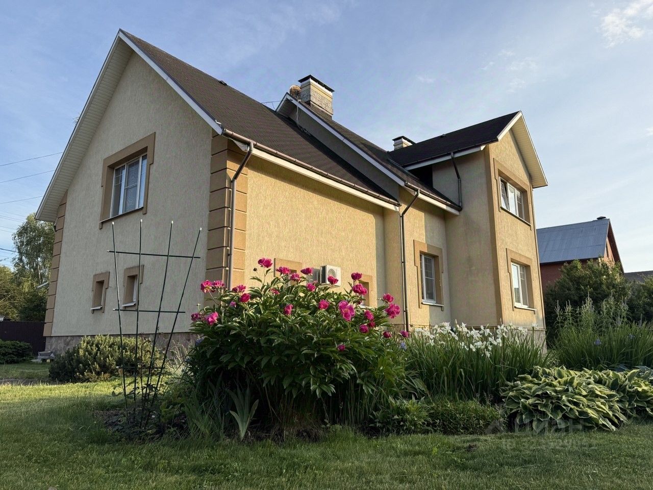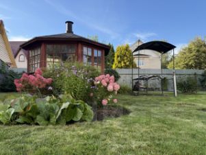 Участок: 14,5 соток. Атмосферный ландшафт. Отличный газон с автоматической системой полива, очень красивые хвойники, авторские клумбы и миксбордеры, живая изгородь, декоративный пруд с золотыми рыбками, продуманные места для детской игровой зоны.