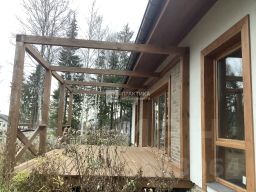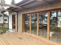 - Продаётся прекрасный 1-но этажный кирпичный новый дом для круглогодичного проживания, расположенный в КП "Пятница КЛАБ", на расстоянии 41 км от МКАД по Пятницкому шоссе. Дом общей площадью 132,4 кв. м. с большой открытой верандой, построен и находится на земельном участке площадью 7, 89 соток. Участок ровный, прямоугольной формы, огорожен забором в едином стиле посёлка. Имеется обустроенная бетонированная площадка для парковки на два автомобиля. Дом капитальный с несущими наружными стенами из крупноформатного керамического блока Porotherm 380 мм, фундамент с монолитной утеплённой плитой во всю площадь дома, крыша с водосточной системой. В доме установлены все окна, установлена входная дверь, панорамные окна в пол с выходом на внутренний двор с красивой террасой. Планировка дома предусматривает возможность реализации ваших дизайнерских идей и вариантов отделки и мебели.