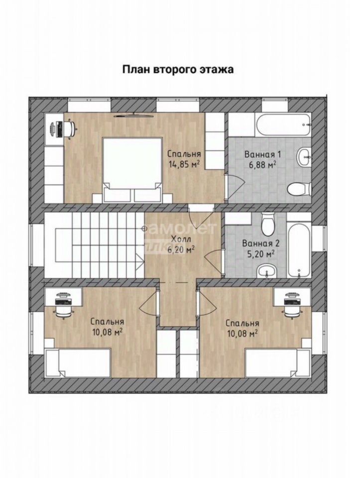 Спальни - 2 по 9.6м2 (19 м2)