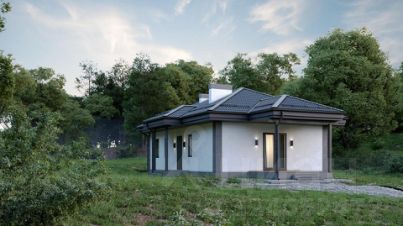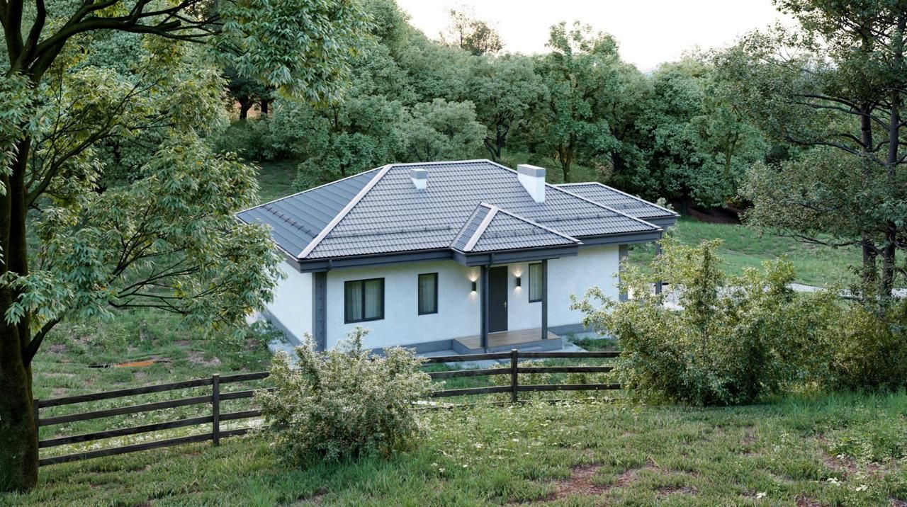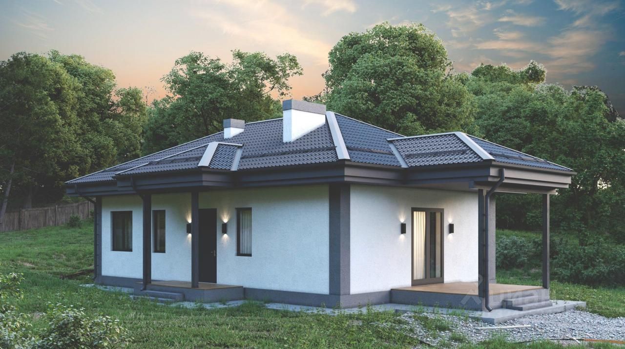 Дом представляет собой одноэтажное строение общей площадью 105 м², из которых 89 м² приходится на жилую площадь. В доме расположены три комнаты и кухня-гостиная. Окна имеют высоту 1,6 метра, а высота потолков составляет 3 метра. Фундамент выполнен из монолитного бетона на свайно-ростверковой основе, крыша вальмовая и покрыта металлочерепицей.