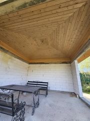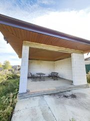 Забетонированные дорожки и площадка под 4 машины, беседка из пеноблока.