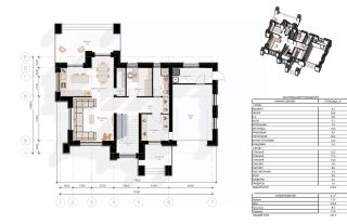 Планировка: первый этаж - гостиная, кухня-столовая, кабинет, кладовая, санузел, гараж, терраса. Второй этаж - три уютные спальни, постирочная, 2 санузла, 2 гардеробные, балкон.