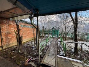На участке взрослые плодовые деревья и кустарники, ухоженная садовая зона