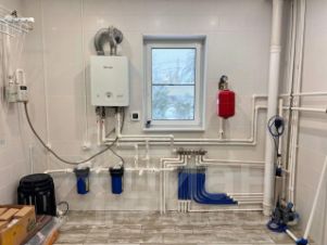 Произведено подключение ко всем необходимым коммуникациям: Магистральный газ; электричество 15 кВт; септик Топаз-8; 2 питьевых колодца; оптоволоконный интернет; Охранная сигнализация; Электрические ворота.