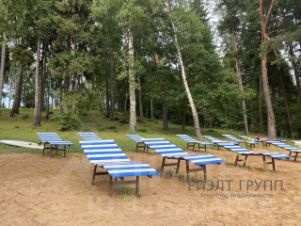 собственный пляж посёлка с лежаками;