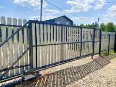 Участок огорожен забором С ОТКАТНЫМИ ВОРОТАМИ, которые открываются с пульта!
