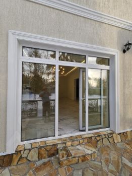 Окна BRUSBOX-70AERO (Фурнитура ROTO). На 1 этаже два окна - раздвижные порталы.