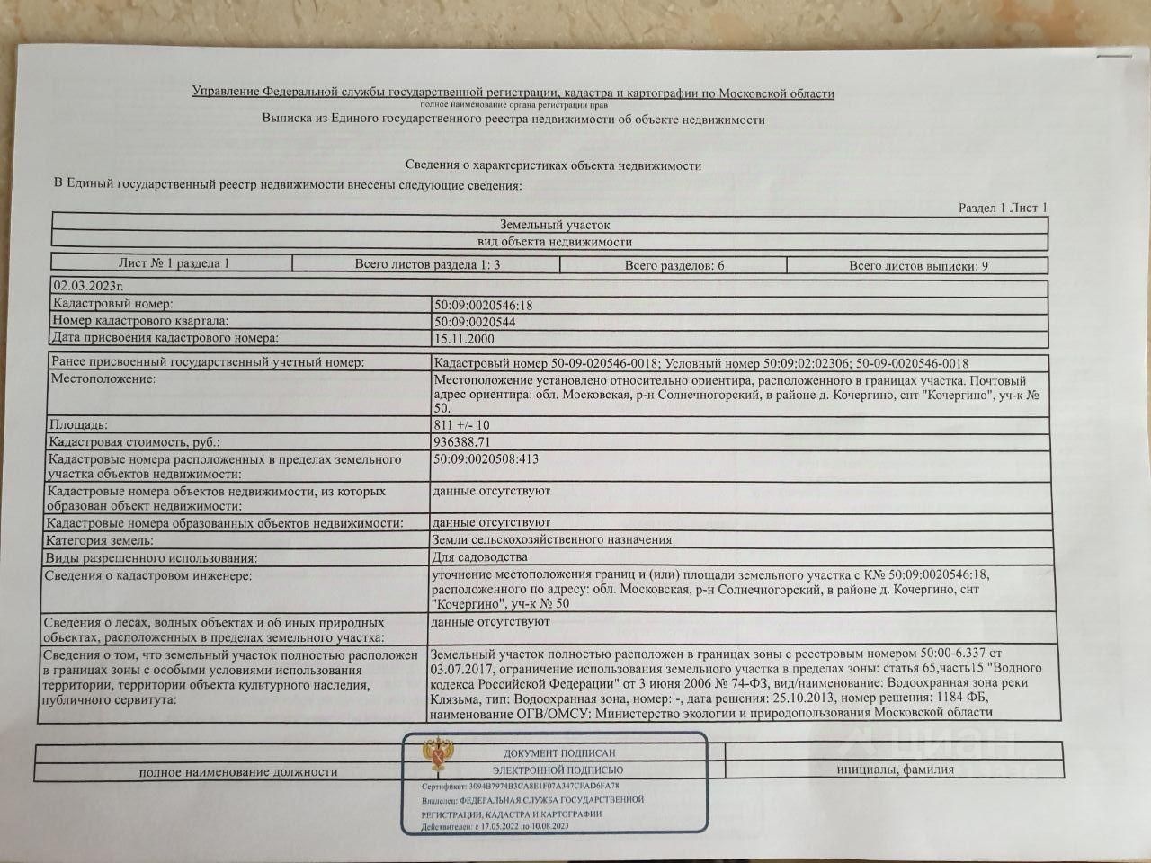 Категория земель: Земли сельскохозяйственного назначения, кадастровый номер - 50:09:0020546:18.