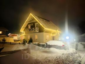 По контуру крыши проведена праздничная гирлянда — дом особенно красиво выглядит вечером.