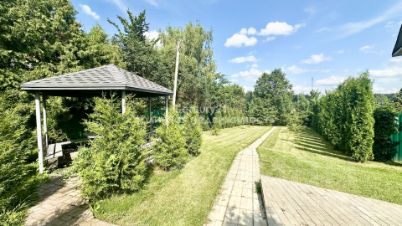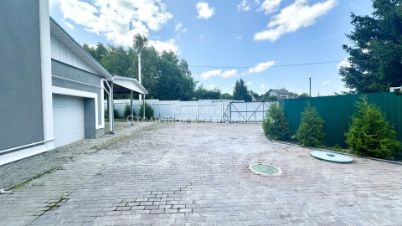двухуровневый, разграничен низким изящным кованным забором, ухоженный газон, плодовые и хвойные деревья, проведены выводы для капельного автополива, дренаж по периметру дома с выводом за пределы участка, крытая беседка с оборудованной посадочной зоной, залита бетоном площадка для зоны барбекю или бассейна, забор из профлиста, откатные автоматические ворота, парковка на 4-5 автомобиля выложена брусчаткой, крытый отапливаемый гараж, навес на два автомобиля.