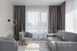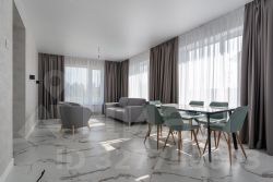 Планировка включает просторную кухню-гостиную, 3 спальни и 2 сан узла.