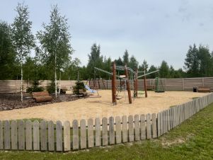 На территории поселка большая детская площадка для детей разных возрастов.