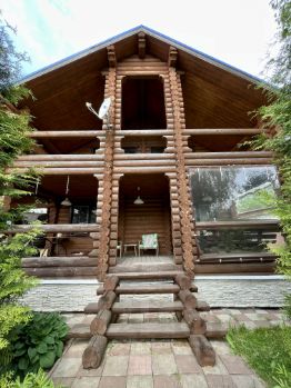 Материал стен - бревно (проведена герметизация внешних швов и подшит фасад дома). Фундамент - сваи. Крыша - мягкая черепица. Вода из колодца (разводка по дому и бане). Канализация - септик. Отопление - котел, с системой антифриза. Вода теплая - бойлер 200 литров