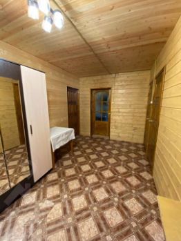 Надземная часть дома выполнена из бруса, утеплена и облицована кирпичом. Внутренняя отделка имитация бруса. Окна пластиковые.